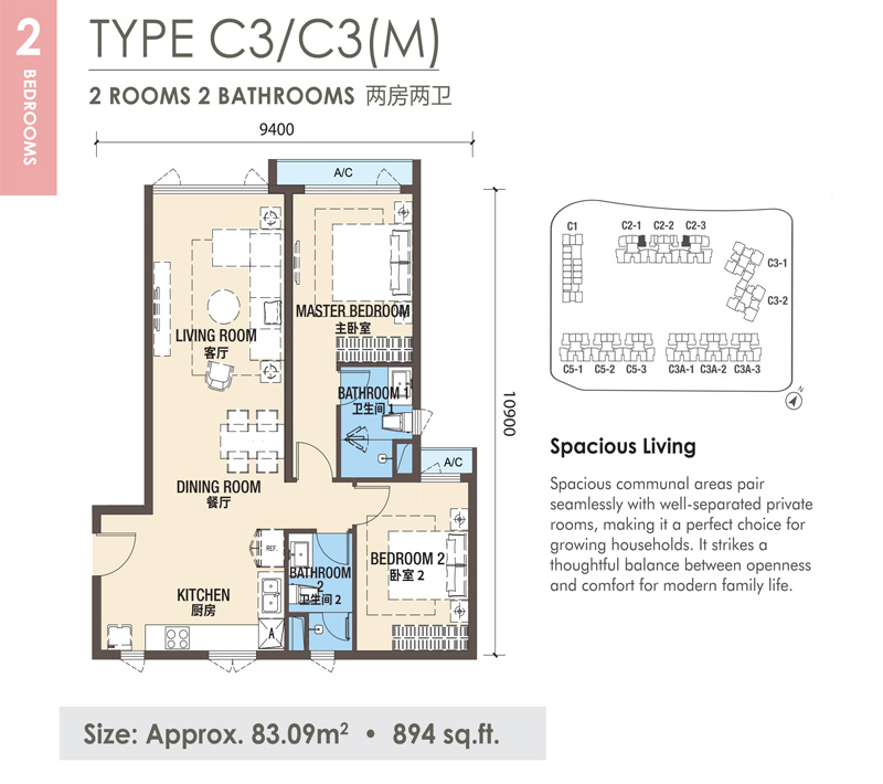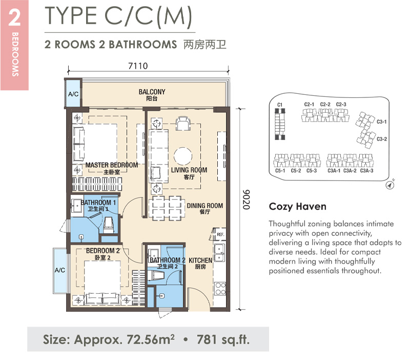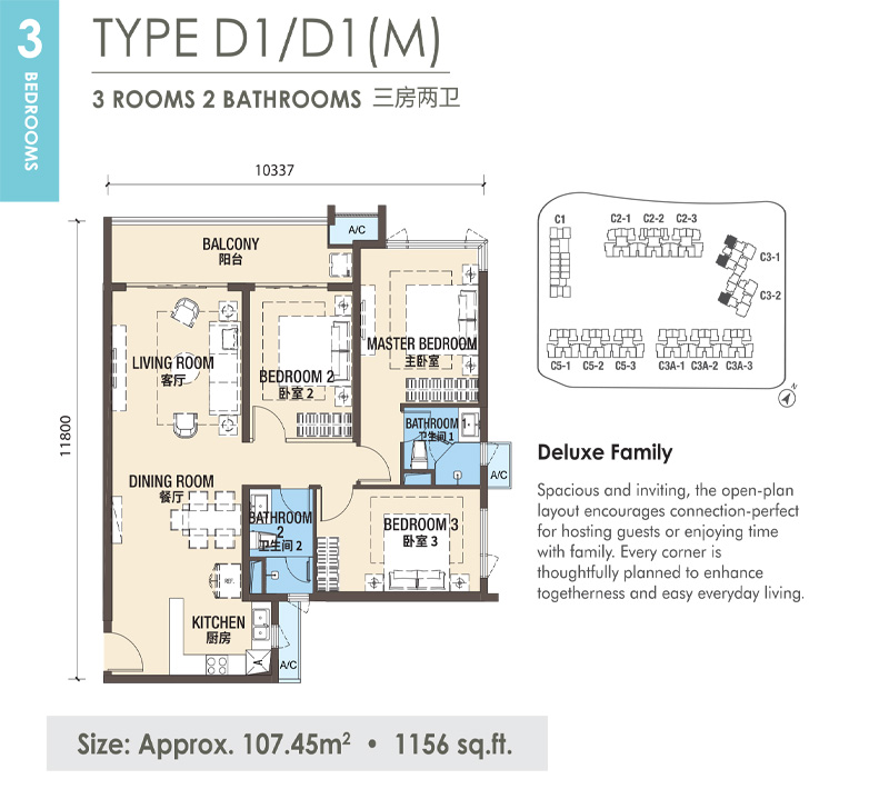 Spacious communal zones are paired with distinct private areas, creating a harmonious environment where mulfiple generations can live together—comfortably and respectfully.The open-plan core connects seamlessly to a wide balcony, creating a harmonious setting where everyday life, family bonding,and quiet moments naturally unfold.